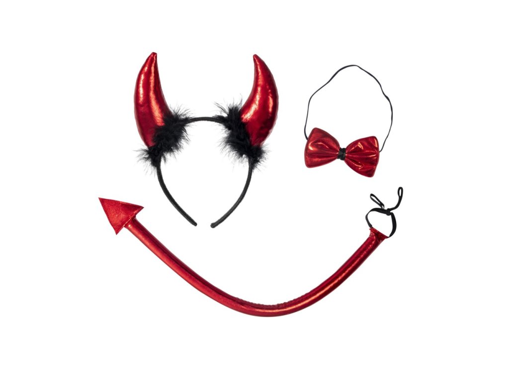 Roztomilá čertí sada, ve které najdete čelenku s rohy, ocas a stylového motýlka. Tento doplněk je ideální na mikulášský večírek.Doplňkové parametry