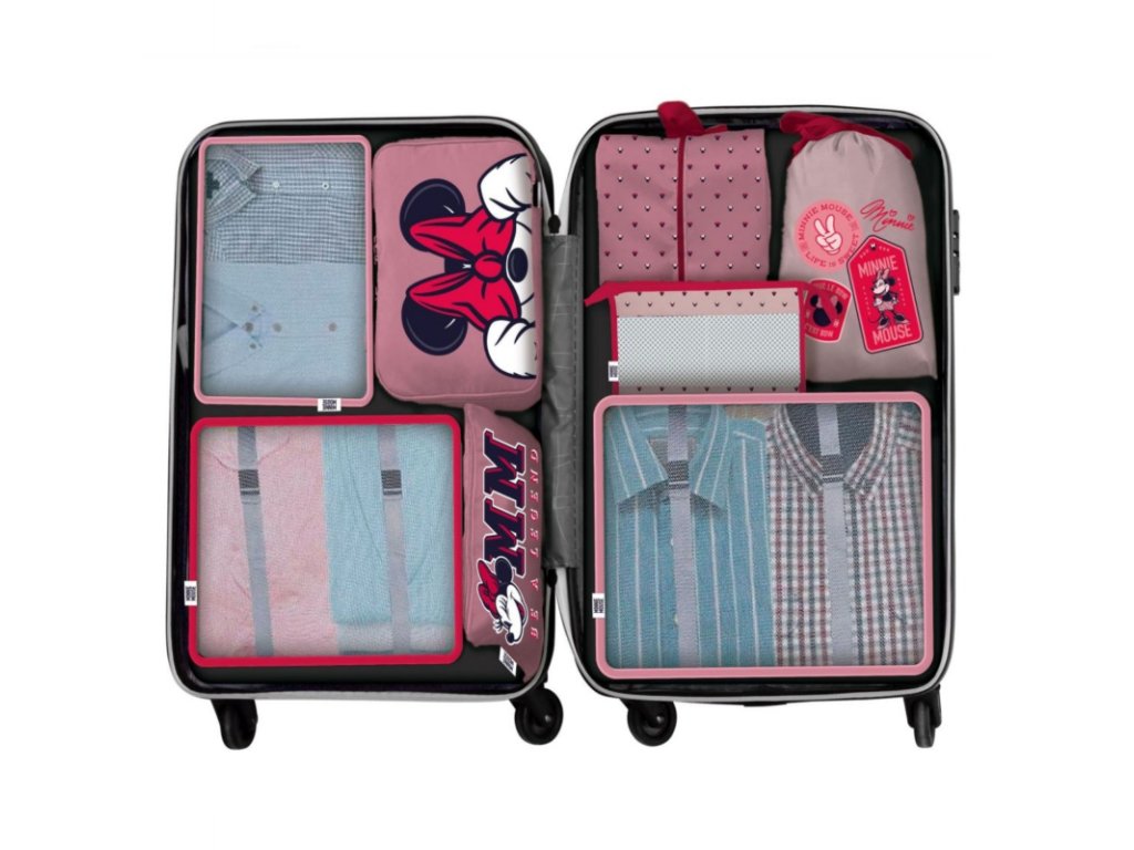 Sbalte se rychle, jednoduše a bez stresu! 8dílná sada cestovních organizérů Minnie Mouse udrží všechny věci v kufru přehledně uložené. Ideální volba pro všechny malé i velké cestovatelky, které zbožňují Minnie! 💗✈️