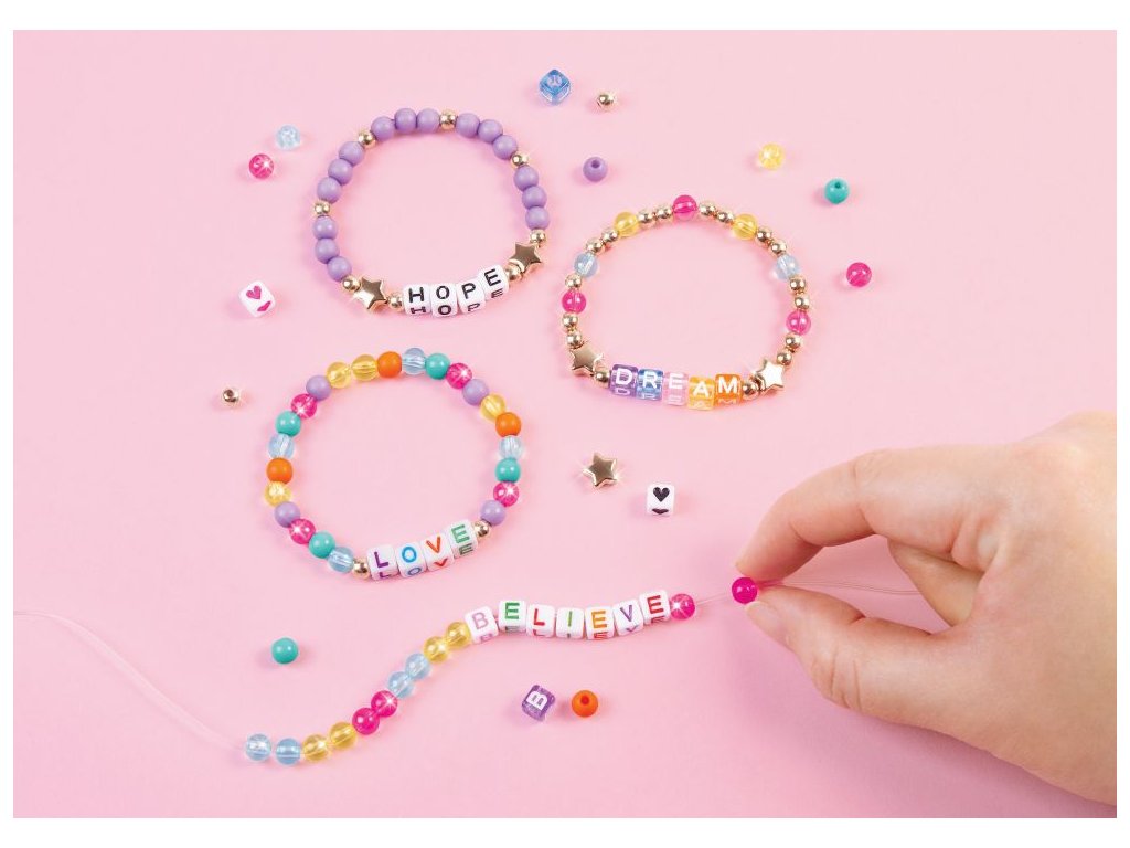 Nejlepší sada náramků přátelství! Použijte více než 1000 různých korálků k vytvoření náramků se zábavnými a inspirativními zprávami. Náramky přátelství jsou velmi trendy a vždy stylové a jsou perfektní kutilskou činností pro mladé kreativce. Obchodujte s přáteli, sdílejte zábavu a šiřte pozitivní zprávy! Tato sada náramků je skvělým nápadem na dárek pro začínající kreativce, ať už k narozeninám, svátku nebo jen tak. Sestavování náramků přátelství rozvíjí jemné motorické dovednosti doplnění a umožňuje jim kreativně se vyjádřit. Tato aktivita je ideální pro děti ve věku 8+ a umožňuje jim být kreativní a prozkoumat svůj jedinečný styl.Doplňkové parametry