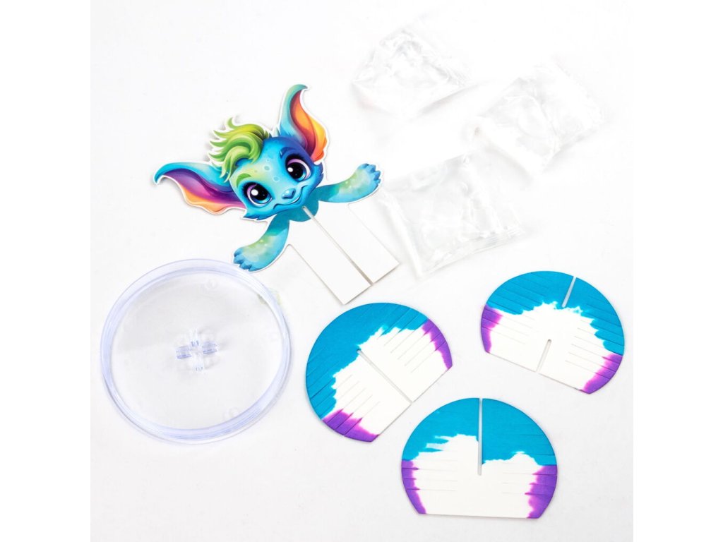 Tato kreativní sada obsahuje kartónové šablony, podstavec a speciální sáčky s vodou. Po složení konstrukci stačí polít vodou a začně proces proměny v rozkvětlý kožíšek.Doplňkové parametry