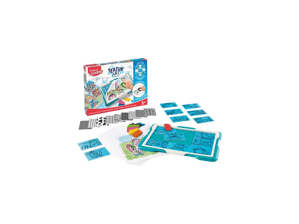 Kreativní souprava, která funguje jako zábavná a originální desková základna. Obsahuje kreslicí tabulku, 7 speciálně tvarovaných kříd, 15 oboustranných předloh, 9 šablon a 5 listů papíru. Pomocí šablon vytvoříte originální umělecké dílo. Máte neomezené možnosti k sestavení samotného obrázku a následného vybarvení. Souprava je vhodná pro děti od 5 let. Sada obsahuje: 1 kreslicí tabulku, 7 barevných kříd, 15 oboustranných předloh, 9 šablon s různými texturami cca 5 listů formátu A4.Doplňkové parametry