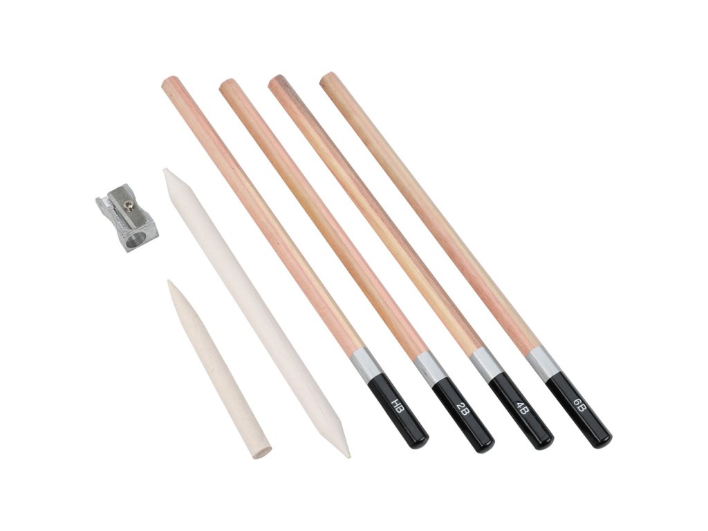 - 4 robustní tužky 2B, 4B, 6B, HB