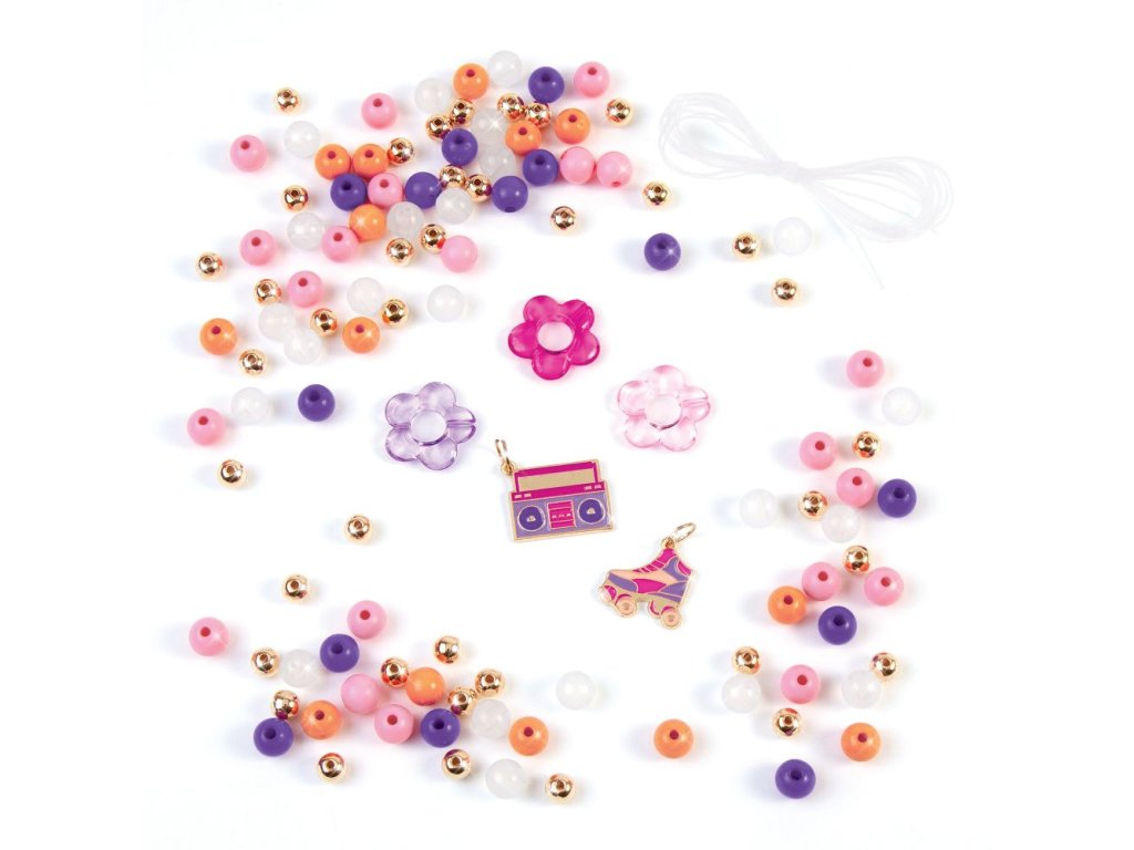 Sluneční světlo promění barvy korálků! Vytvořte si 5 vlastních náramků a užívejte si, jak se barvy korálků mění z bílé na růžovou, fialovou a žlutou! Barva sice vybledne, ale vrátí se do zářivých barev, kdykoli jsou na přirozeném slunečním světle. Tato sada náramků je skvělým dárkem ať už k narozeninám, svátku nebo jen tak. Ideální pro děti, které chtějí být kreativní a prozkoumat svůj jedinečný styl. Pro dobití perliček pro změnu barvy jednoduše uložte před dalším použitím na 5 minut do mrazáku. Sada obsahuje čirou elastickou šňůrku, 23 měnících se korálků, 49 korálků, 39 zlatých korálků, 3 květinové přívěšky, 2 kovové přívěšky, instrukce a úložný box. Vhodné pro děti od 8 let.Doplňkové parametry