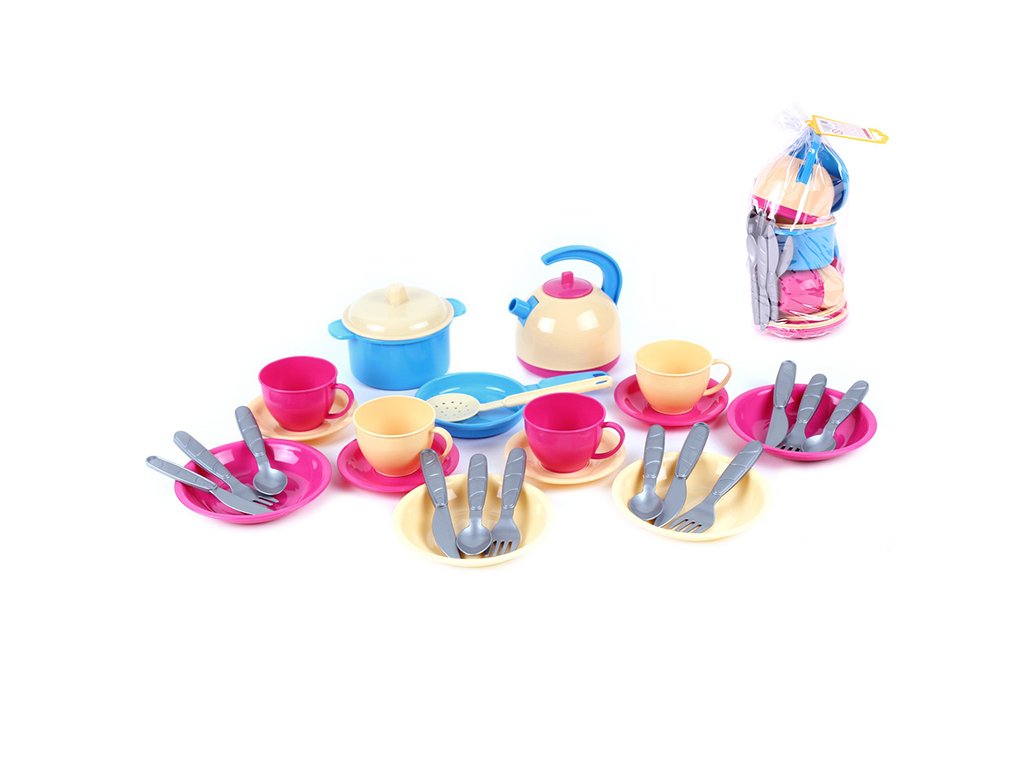 Nevíte si rady s dětmi v kuchyni? Pořiďte jim kuchařské náčiní, ať mohou vařit s vámi. Sada nádobí obsahuje konvici, hrnec, pánev, talíře, příbory, šálky a podšálky. Vhodné pro děti od 3 let.Doplňkové parametry