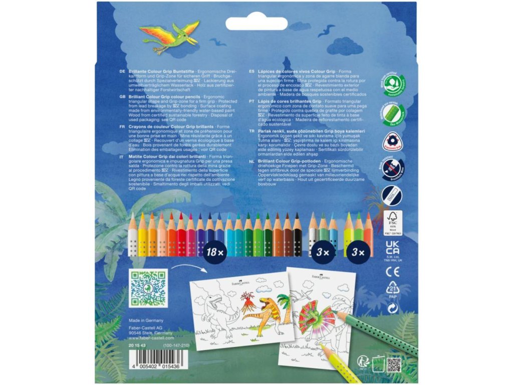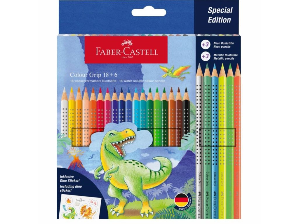 Sada pastelek Faber-Castell Colour Grip 18+6 neonových a metalických - Dino