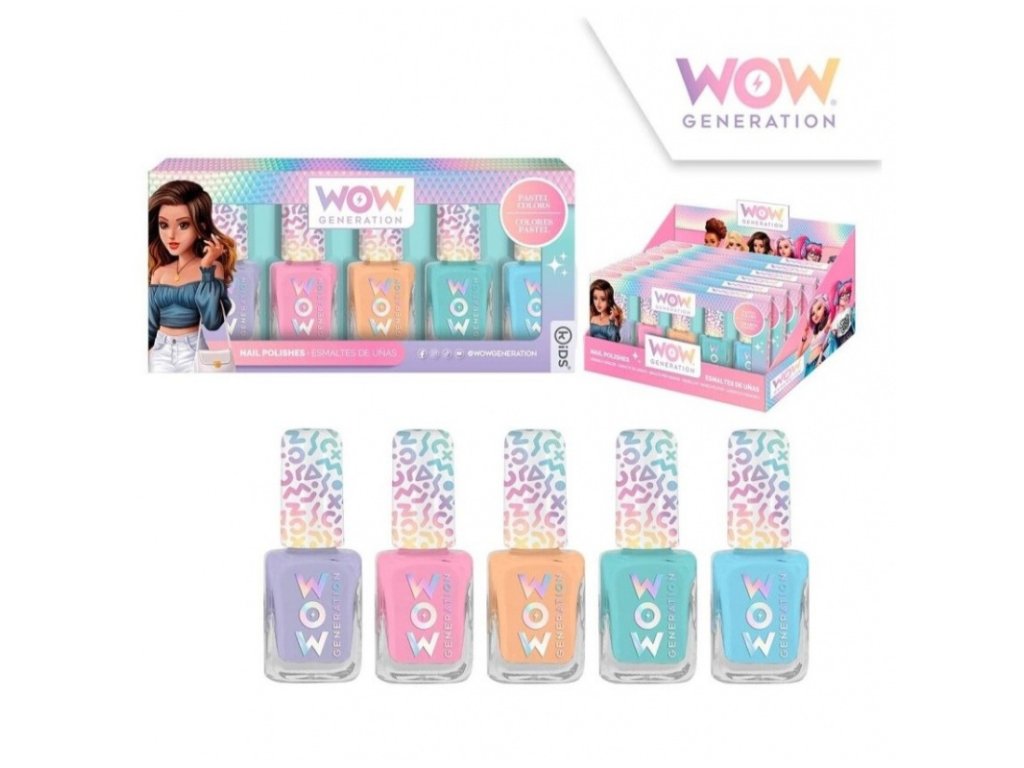 Balení 5 laků na nehty v pastelových barvách. Všechny naše WOW dívky si rády lakují nehty. A my víme, že i vaše dcera to miluje, a proto vám přinášíme toto balení 5 různých barevných laků. Balení obsahuje pastelové barevné laky na nehty: fialový, růžový, žlutý, zelený a modrý.• výrobce: KIDS LICENSING®, Španělsko