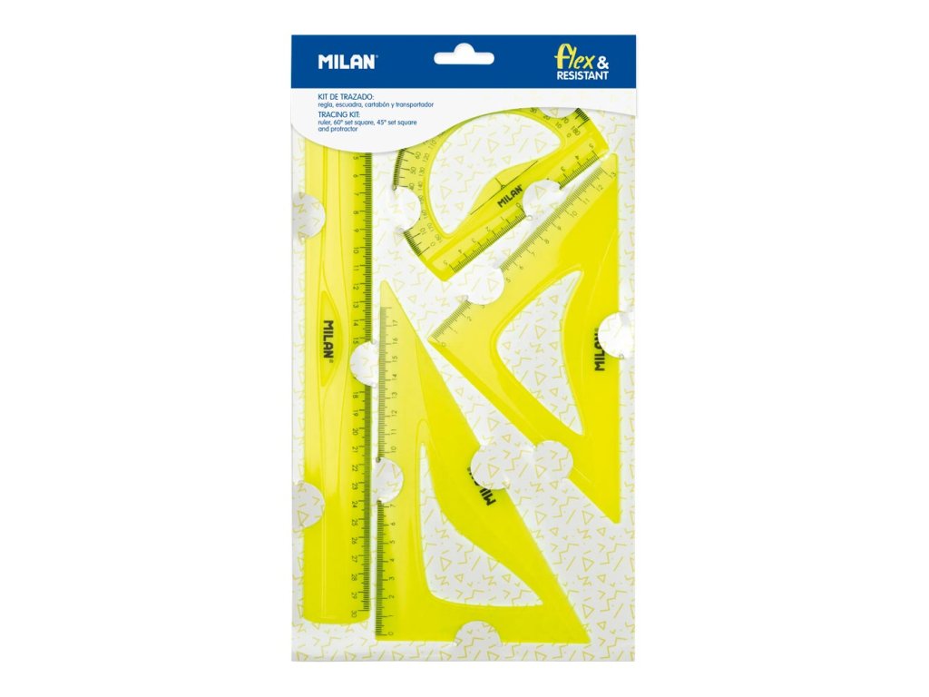 4-kusová rýsovací sada pravítek značky MILAN, vyrobená z ohebného a odolného materiálu (Flex & Resistant)