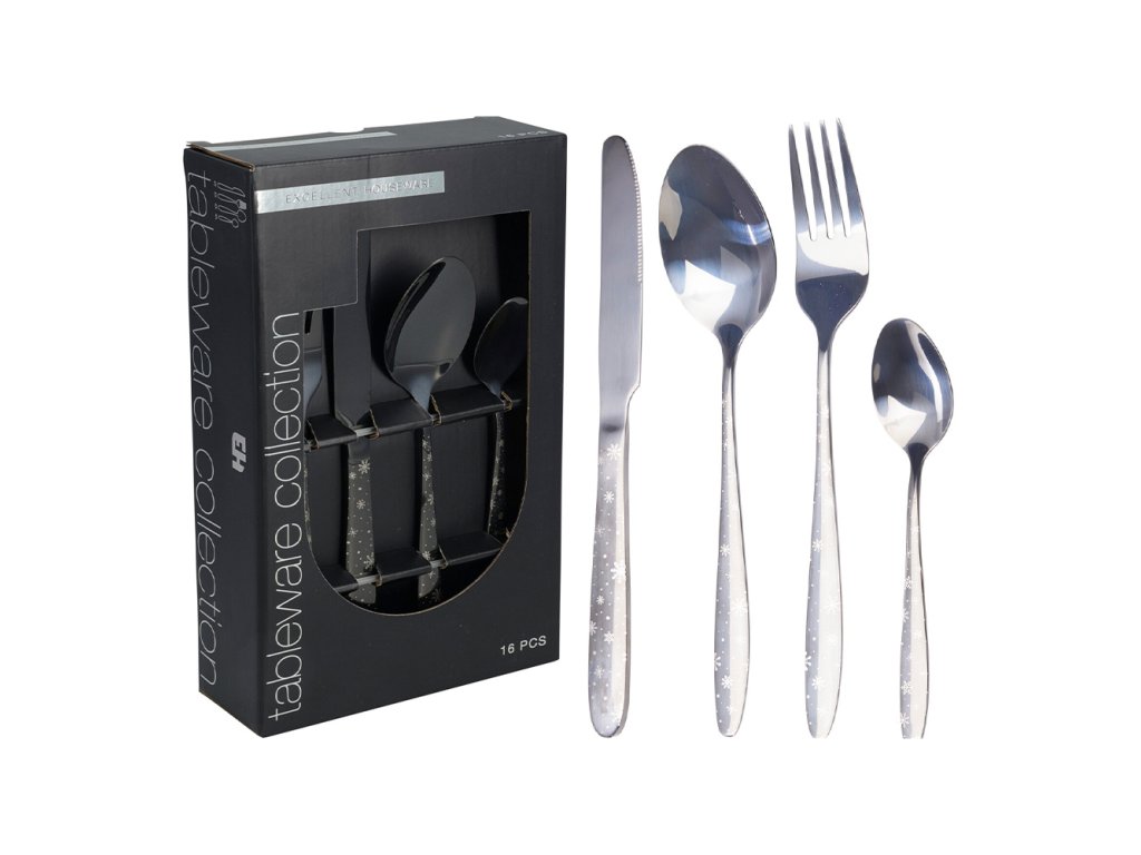 Sada příborů - nerezová ocel/stříbro se sněhem. Sada 16 kusů příborů s motivem sněhové vlo