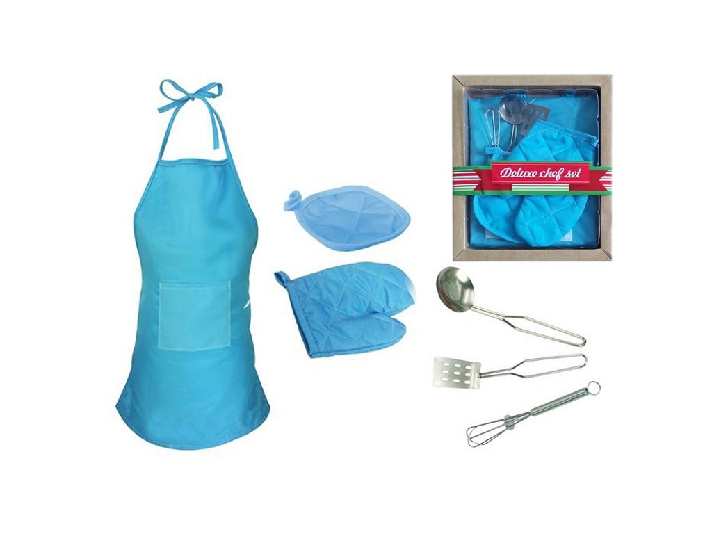 Sada pro malé kuchaře modrá - zástěra a doplňky v krabičce