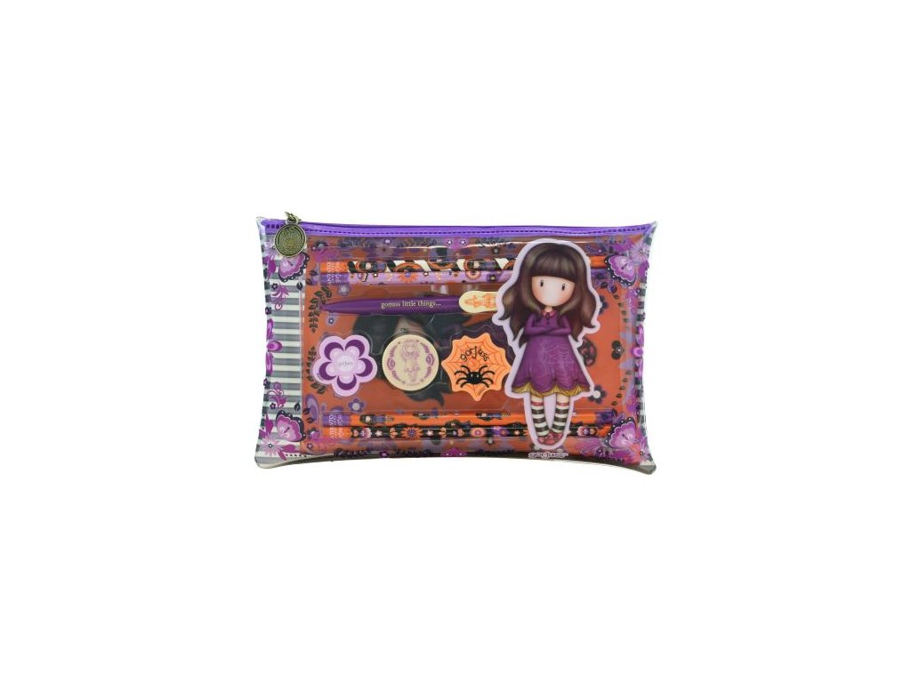 Krásná sada s psacími potřebami Santoro London, motiv Fiesta Cobwebs Sada obsahuje: - plastový penál na zip - plnicí pero - černá náplň - 4 tužky HB - ořezávátko - 2 gumy - linkovaný zápisník Obchodní informace: výrobce: Santoro London kolekce: Gorjuss motiv: Fiesta - CobwebsDoplňkové parametry