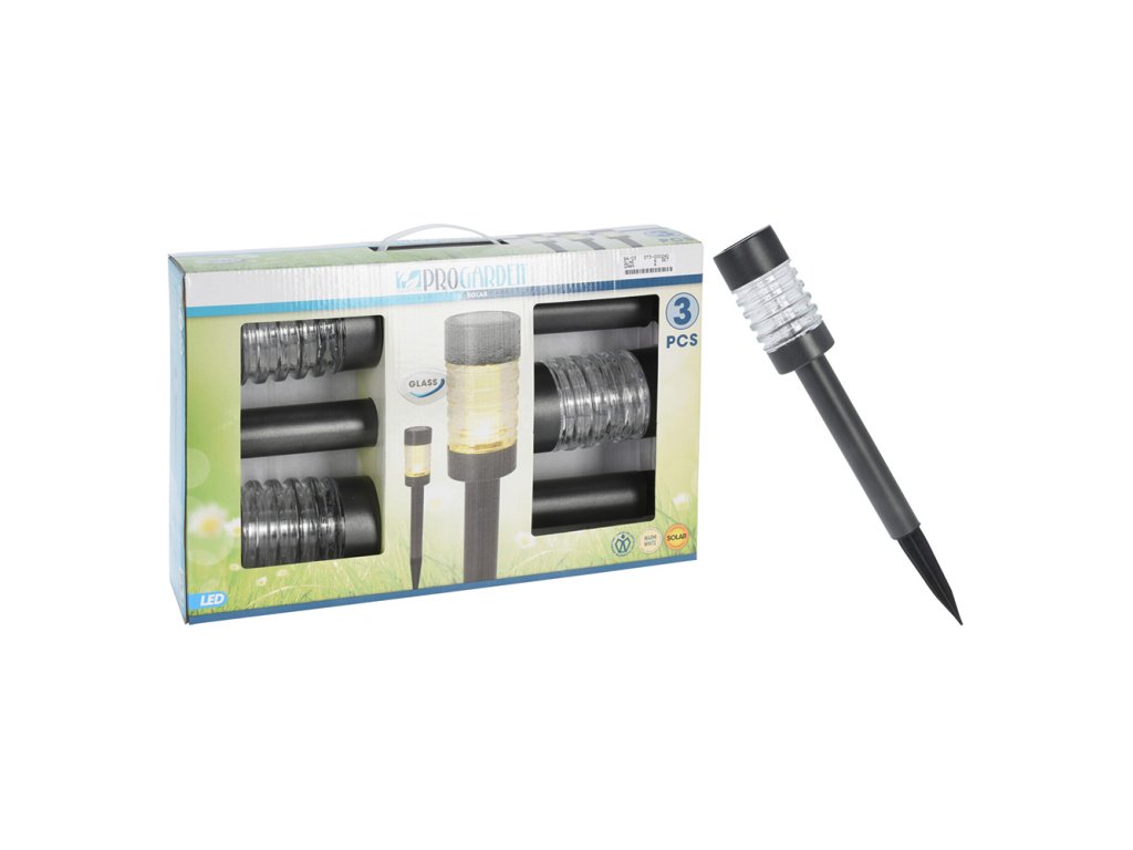 - trojdielna sada vonkajších LED solárnych lámp vhodná na osvetlenie celej záhrady, verandy, chodníčkov, altánkov, atď...- určená na zapichnutie do zeme ale napr. aj do kvetináčov