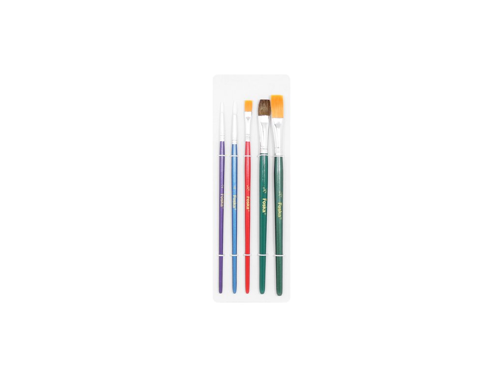 Sada štětců Foska Color 5 ks, kulaté č. 2 a 4 + ploché č. 1/4, 1/2, 1/2