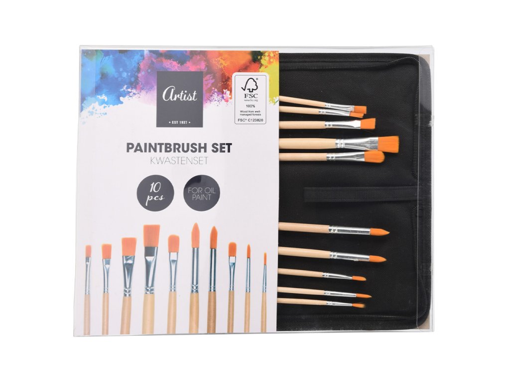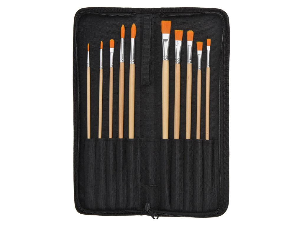 Sada štětců pro olejomalbu (10 ks) v pouzdře