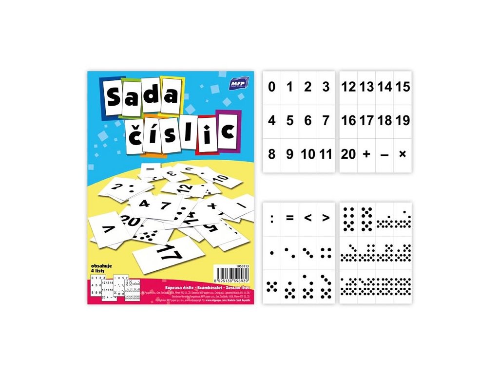 Sada 4 ks tisků ČÍSLICE- slouží k vystřižení jednotlivých číslic, vhodné pro výuku v prvních ročnících základních škol. Školáčci si díky těmto kartičkám procvičí základní matematické počty. Sada obsahuje 4 listy, na kterých jsou:- číslice od 0 do 20- matematické znamínka- znaky ve tvaru černých teček různého počtuDoplňkové parametry