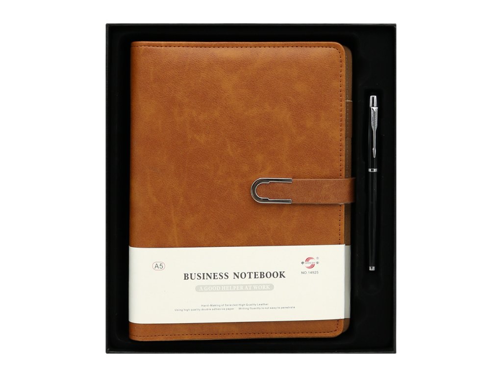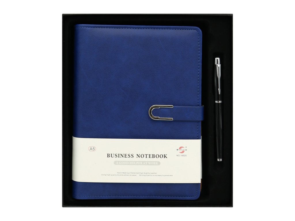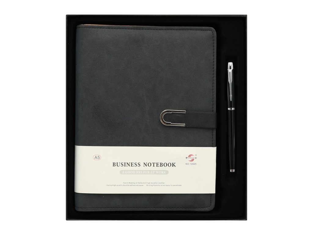 Zápisník /Diár s mäkkučkou PU obálkou a magnetickou prackou v štyroch farbách + Roller s čiernou, veľkoobjemovou náplňou.- listy s čiernymi linajkami (rozostup liniek 9 mm)