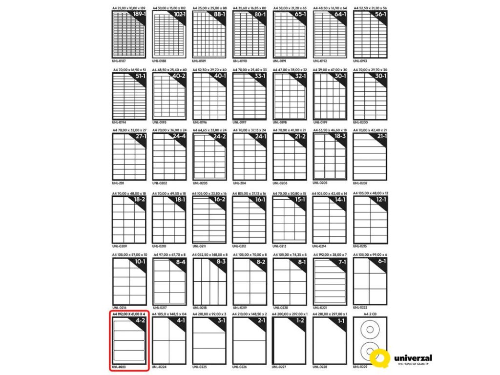 Samolepicí etikety A4 192 x 61 x 4, 100 listů