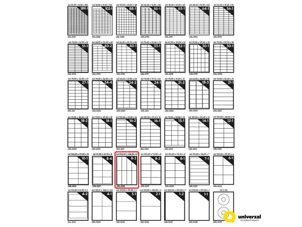 Samolepicí etikety A4 52.5 x 148.5 x 8, 100 listů