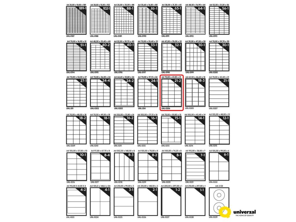 Samolepicí etikety A4 70 x 41 x 21, 100 listů