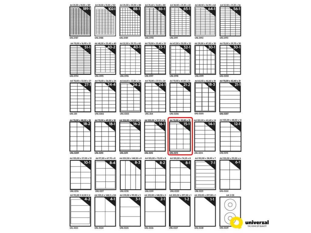 Samolepicí etikety A4 70 x 50.8 x 15, 100 listů