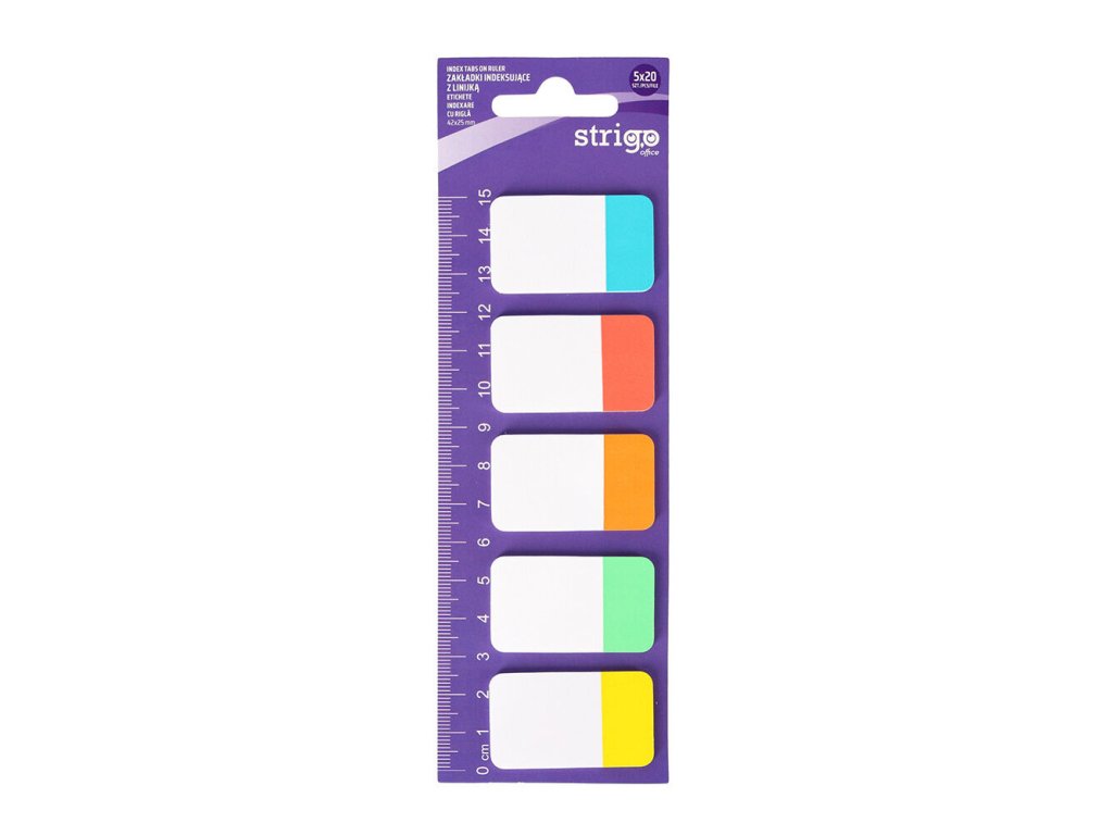 Samolepící záložky Strigo v 5 barvách s pravítkem na blistru.Doplňkové parametry
