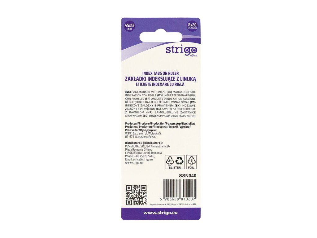 Samolepící záložky Strigo v 8 barvách s pravítkem na blistru.Doplňkové parametry
