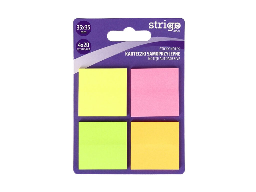 Samolepící záložky ve tvaru čtverečků, balení obsahuje 4 barvy po 20 ksDoplňkové parametry