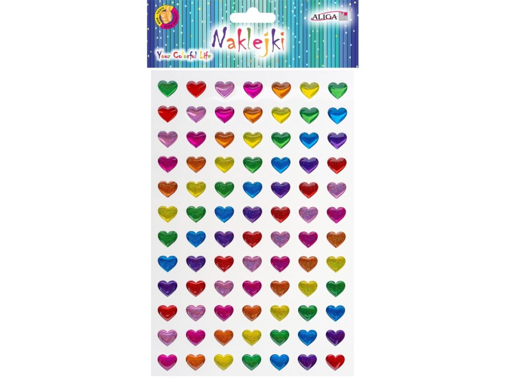 Samolepka 3D barevná srdíčka malá