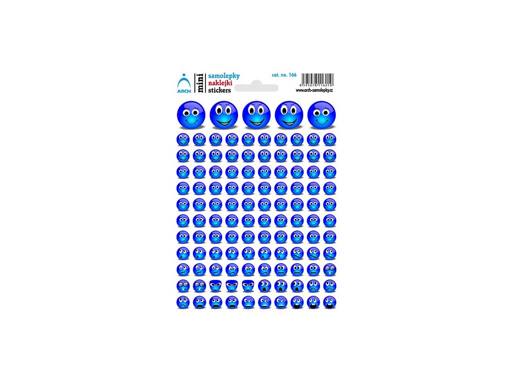 Modří smajlíci vyjadřující různou náladu.Doplňkové parametry