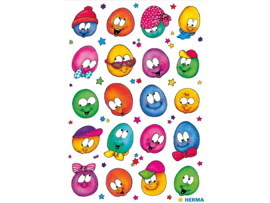 Samolepky barevné legrační tváře. Obsah 3 list / 60 samolepek