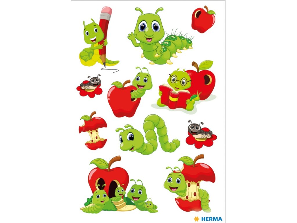 Samolepky Fritz červ, pohybující se oči. Obsah 1 listy / 11 samolepek