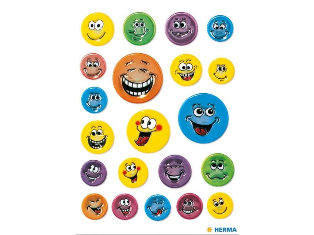 Samolepky legrační ikony, plastická. Obsah 1 list / 21 samolepek