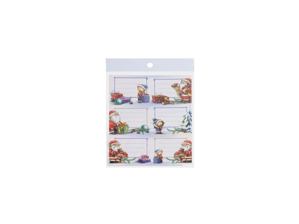 Samolepky na dárky 12,5x16 cm Vánoce. 6 samolepek Velikost jedné samolepky: 6x5,3 cm.Doplňkové parametry
