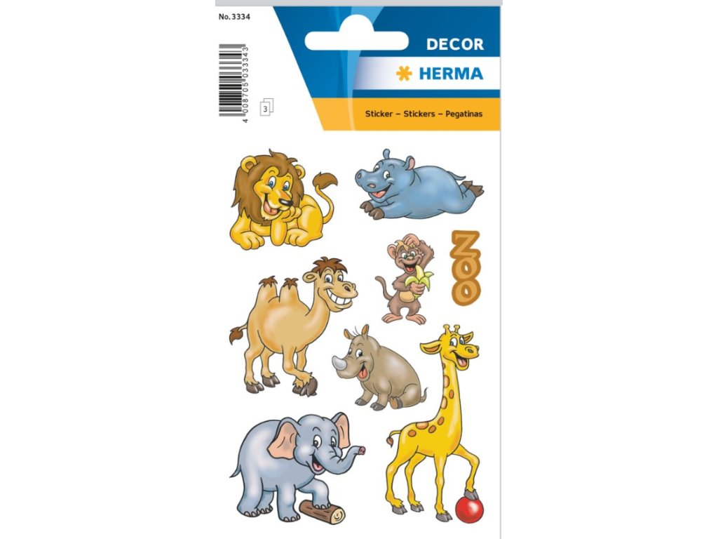 Samolepky ZOO zvířata. Obsah 3 listy / 24 samolepek