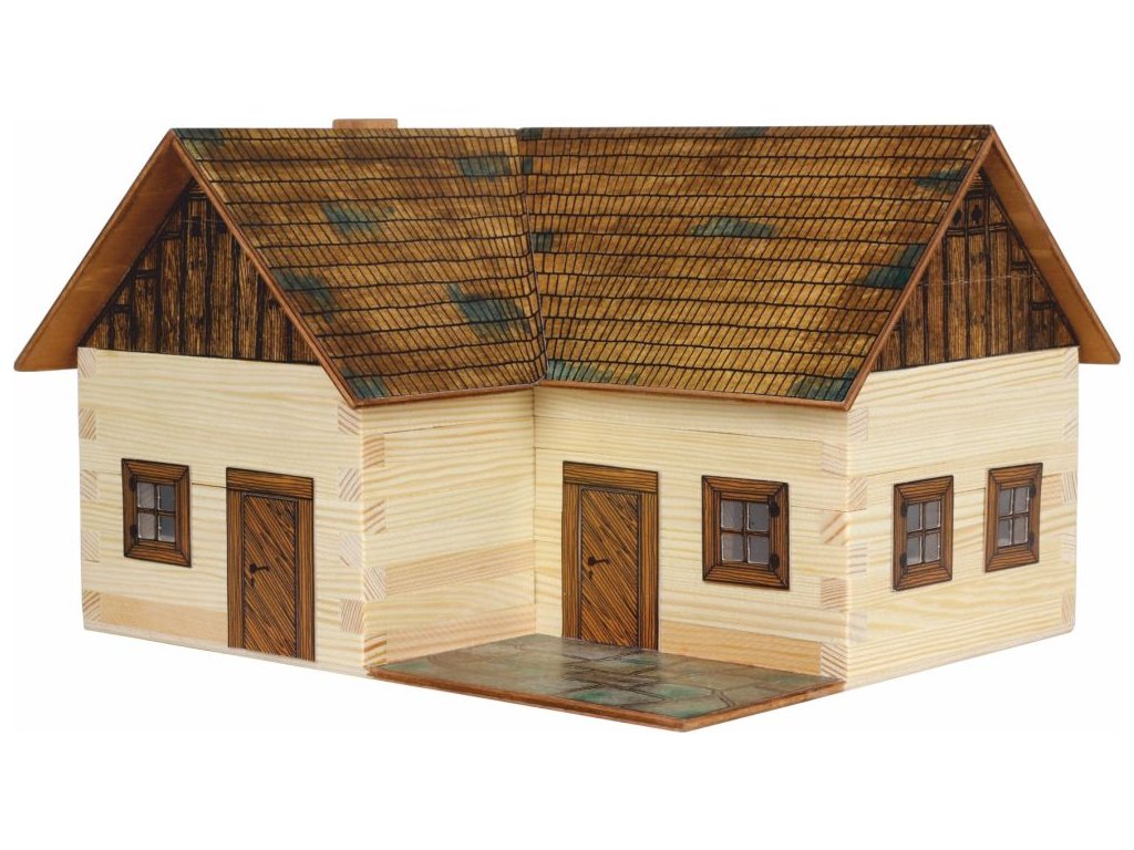Dřevěná slepovací stavebnice Walachia - Samota. Slepovací stavebnice Walachia jsou dřevěné modely domečků a staveb z Valašského kraje v měřítku 1:32. Základem jsou dřevěné hranolky 9x9 mm a k tomu jsou v sadě vždy všechny papírové doplňky - okna, dveře, střešní části atd. Pro lepení se používá lepidlo Herkules, není však součástí stavebnice. Přiložený je montážní návod a malé kapitoly z historie lidové architektury. Níže je označení obtížnosti číslem 1 - 5, přičemž 1 je nejlehčí. Rozměry: 24 x 20 x 15 cm. Počet dílů stavebnice: 154. Obtížnost: 3Doplňkové parametry