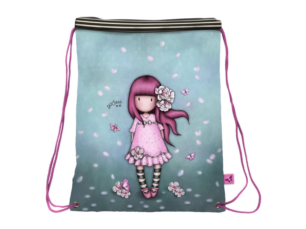 Panenka, která ho zdobí má růžové vlasy s kloboučkem, fialové šaty a u nohou jí leží liška. Podklad je v odstínu modro zeleném plný květů. Sáček je vhodný ne jen na přezůvky, ale také na tělocvik a sport. Pomocí šňůrek vak stáhnete a můžete jej nosit na zádech nebo na rameni. Údržba vaku je velmi snadná, postačí Vám k tomu pouze vlhký hadřík. Podrobný popis: velmi lehký šňůrky na stažení materiál: 100% polyester snadná údržba rozměry: 44 x 34 cm Obchodní informace: výrobce: Santoro London kolekce: Gorjuss motiv: Cherry BlossomDoplňkové parametry