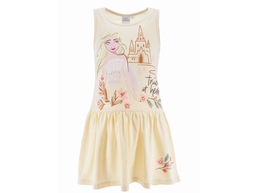 Dívčí šaty s motivem Disney Frozen.Materiál: 100% bavlna. Barva: béžová.Výrobce: Sun City. Oficiální licence.Doplňkové parametry