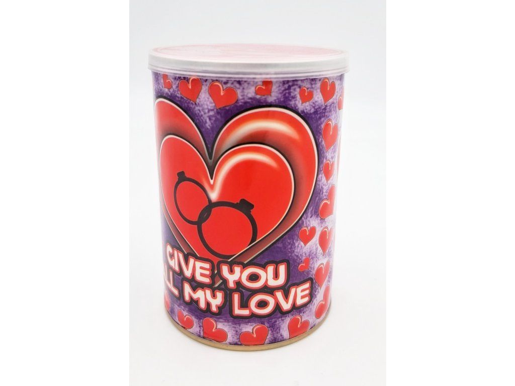 Balenie obsahuje dva lístky. Jeden veľký, na ktorý napíšeš romantické vyznanie a na ten menší napríklad, aby plechovku otvorila.