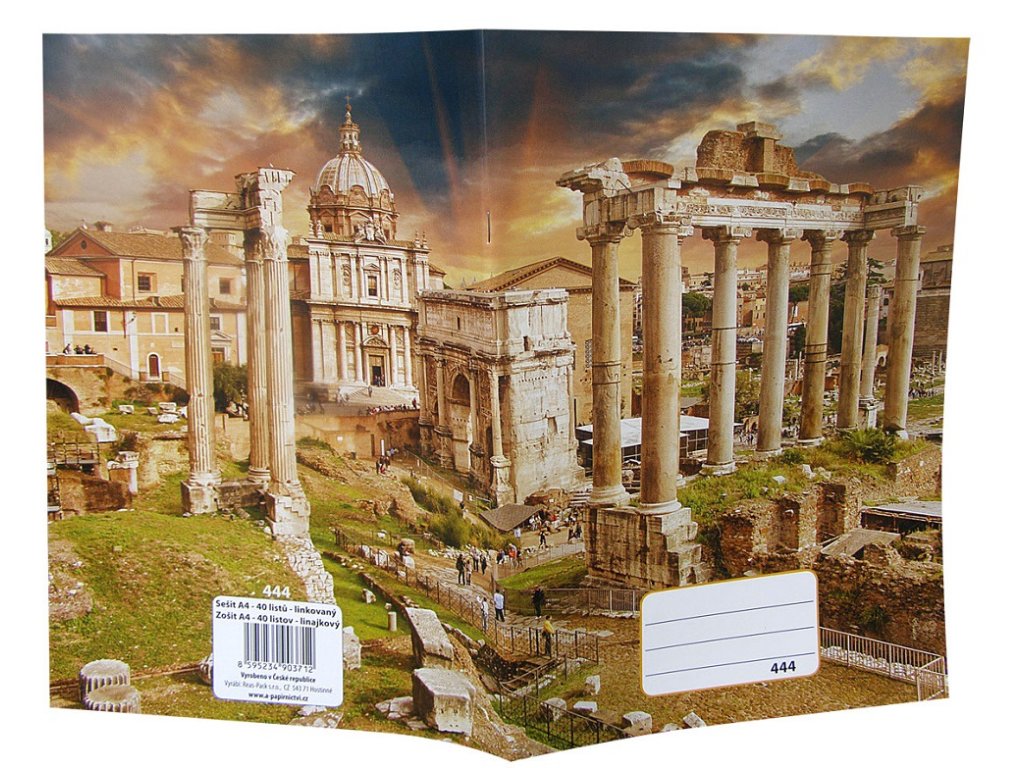 Sešit 444, A4, 40 listů, linkovaný 8 mm, motiv historie