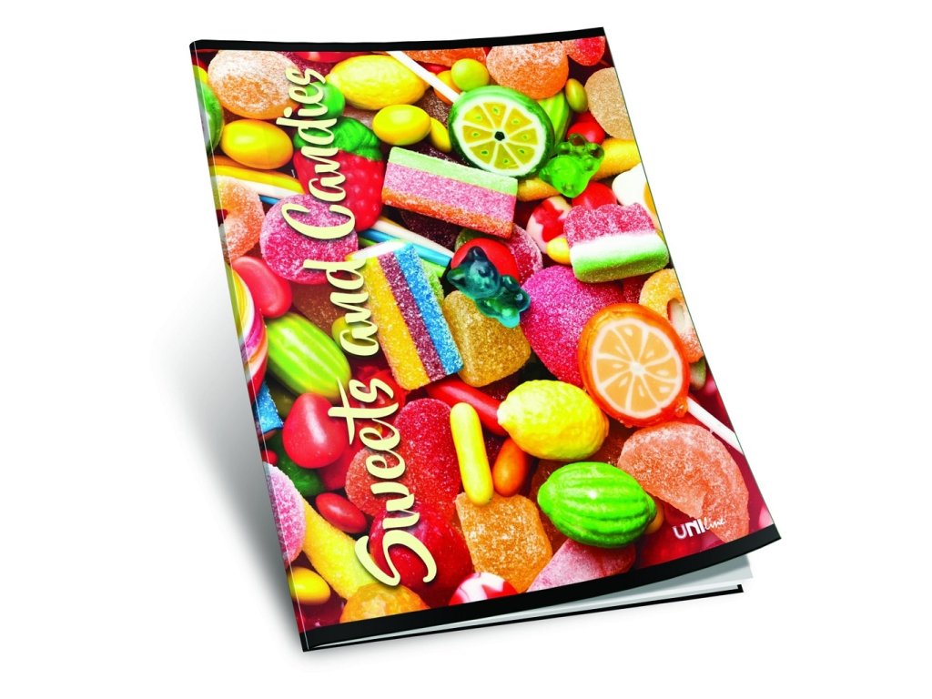sešit 444, A4, 42 listů, linkovaný 8 mm,edice SWEET, motiv bombony
