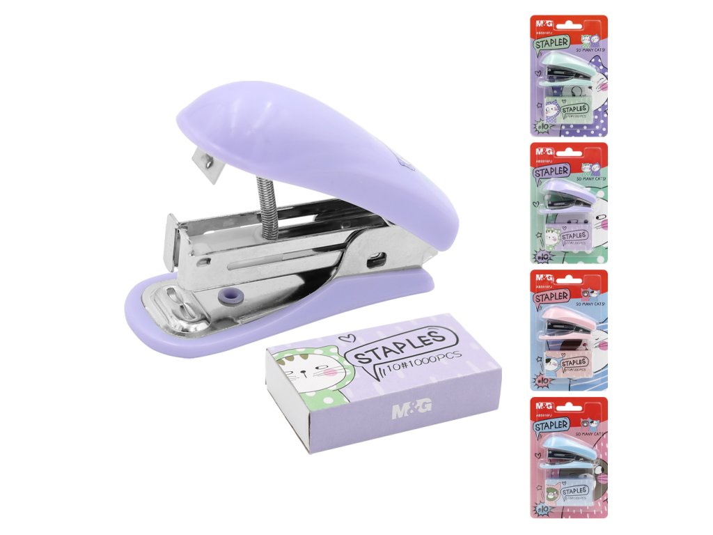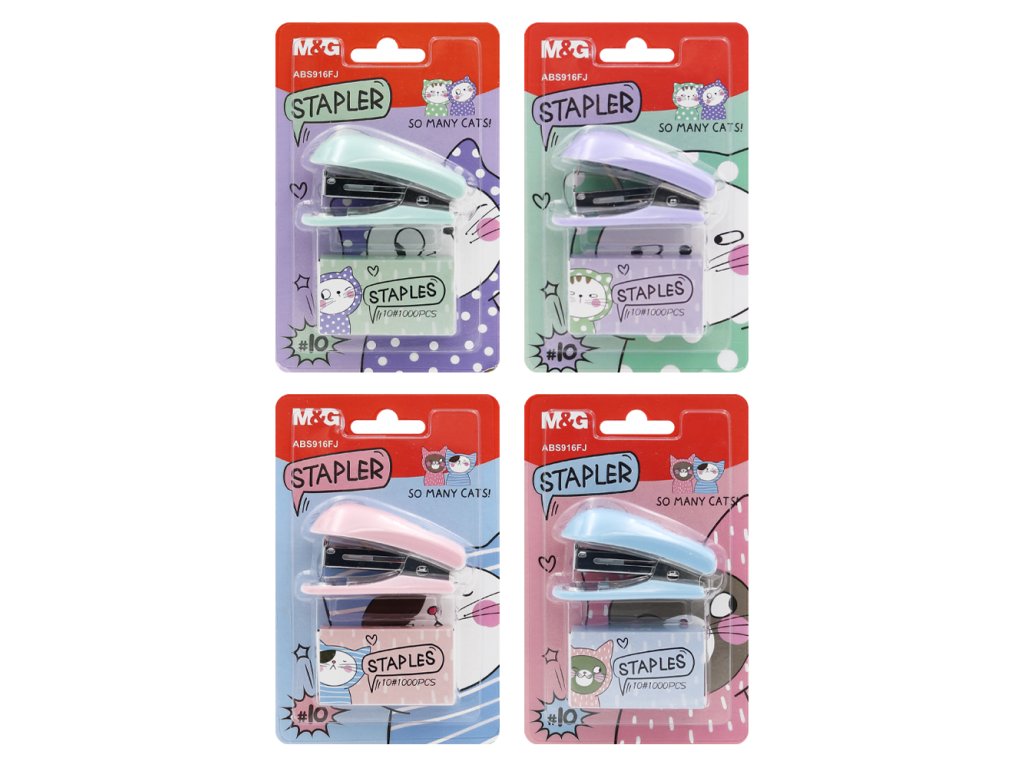 Sešívačka M&G So Many Cats Pastel + spinky No.10 - sada na blistru (4 motivy)