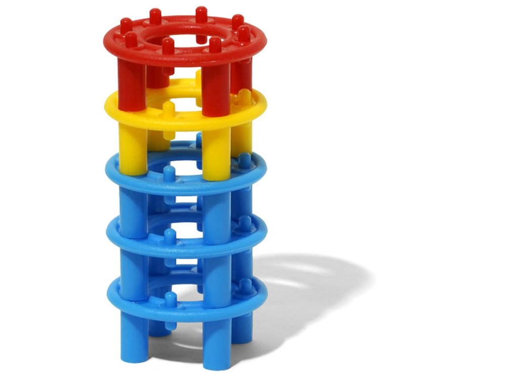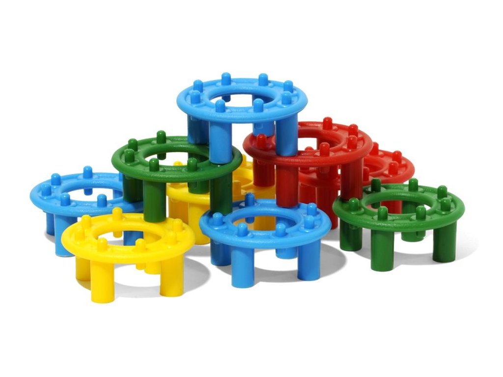Kroužková stavebnice obsahuje 96 dílků ve 4 barvách. Je vhodná již pro nejmenší děti od 1 roku. Pomáhá jim procvičovat cit v prstíkách a poznávat základní barvy.Doplňkové parametry