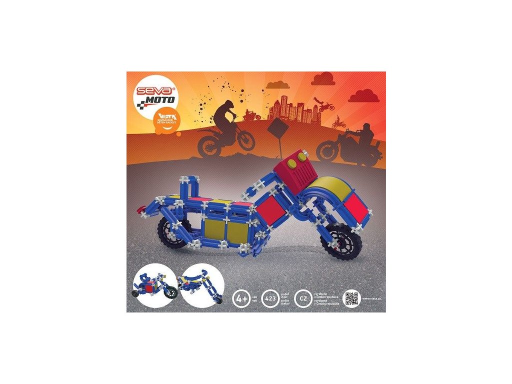Stavebnice SEVA moto obsahuje 423 speciálních dílků, ze kterých si můžete sestavit terénní motorky, chopry, tříkolky atd. Stavebnice je určena pro děti od 4 letDoplňkové parametry