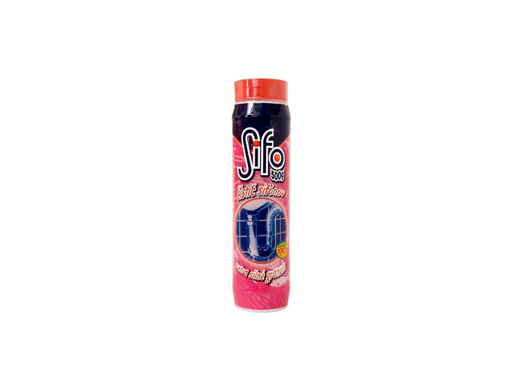 Sifo čistič sifonů je určen na čištění sifonů, umyvadel, výlevek, van, WC a kuchyňských dřezů. Rozpouští kuchyňské odpady, usazeniny i vlasy. Extra silné granule. Hmotnost: 500 g. Složení: Hydroxid sodný (EC 215-158-5) Návod k použití: Do sifonu nasypte 50-100 g Sifa a nalijte 1/2 l vařící vody. Nechte působit 30 minut a spláchněte větším množstvím vody. Při silnějším znečištění postup opakujte. Nepoužívejte na hliníkové potrubí!Doplňkové parametry