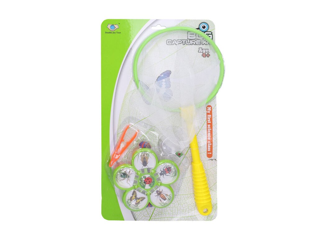 Síťka na hmyz set. Velikost síťky 41 cm. Obsah balení - síťka, 6 krabička na hmyz, lupa, pinzeta. Doporučený věk: 3+Doplňkové parametry
