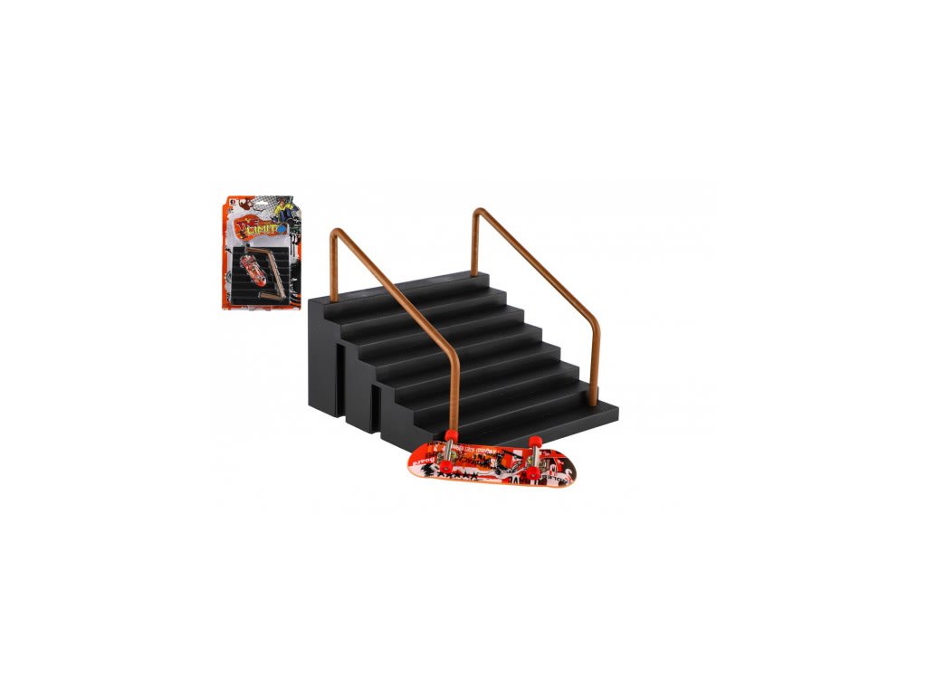 Skateboard prstový plast 9cm se schůdky a zábradlím na kartě