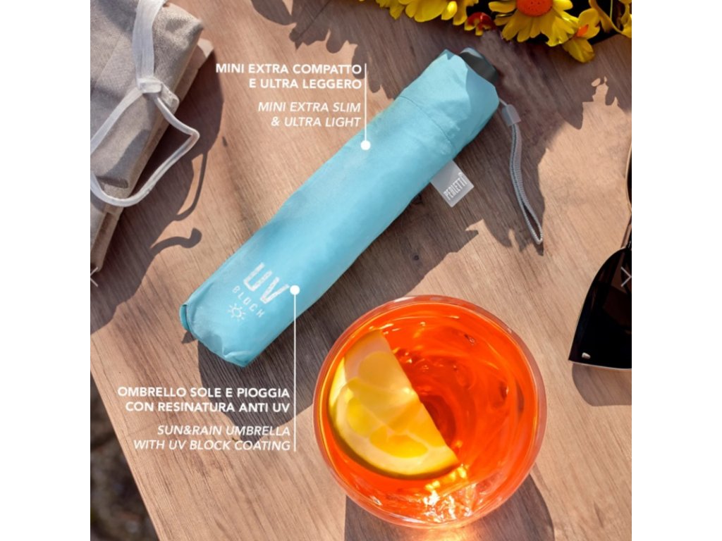 Už nikdy nebudete muset volit mezi ochranou před sluncem a deštěm. Náš deštník Perletti Time je vybaven speciální UV povrchovou úpravou, která vás spolehlivě ochrání před škodlivými slunečními paprsky. Zároveň vás udrží v suchu během nečekané přeháňky.