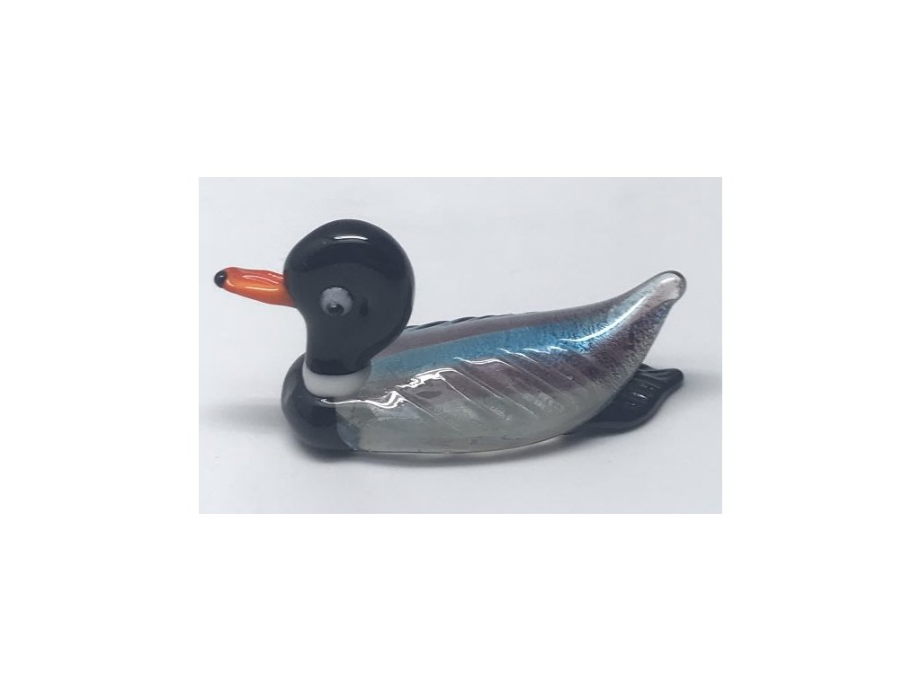 Skleněná figurka kachna fialovomodrá, 80 x 30 x 38 mm
