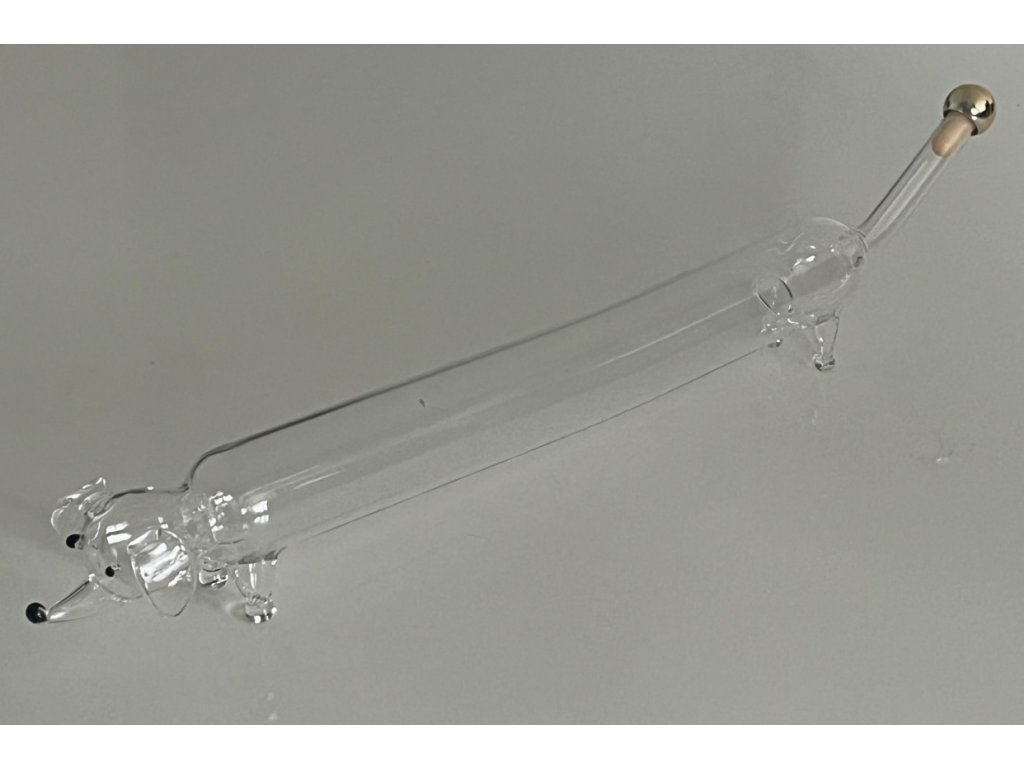 Skleněná ručně foukaná láhev jezevčík, 350 ml