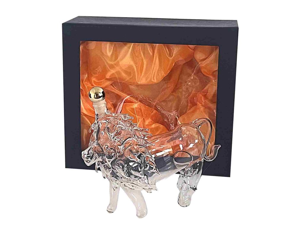 Skleněná ručně foukaná láhev lev, 350 ml