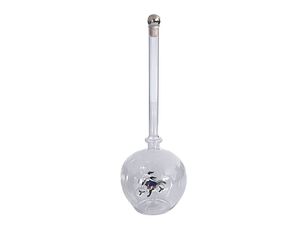 Skleněná ručně foukaná láhev s figurkou, motorka, objem 500 ml